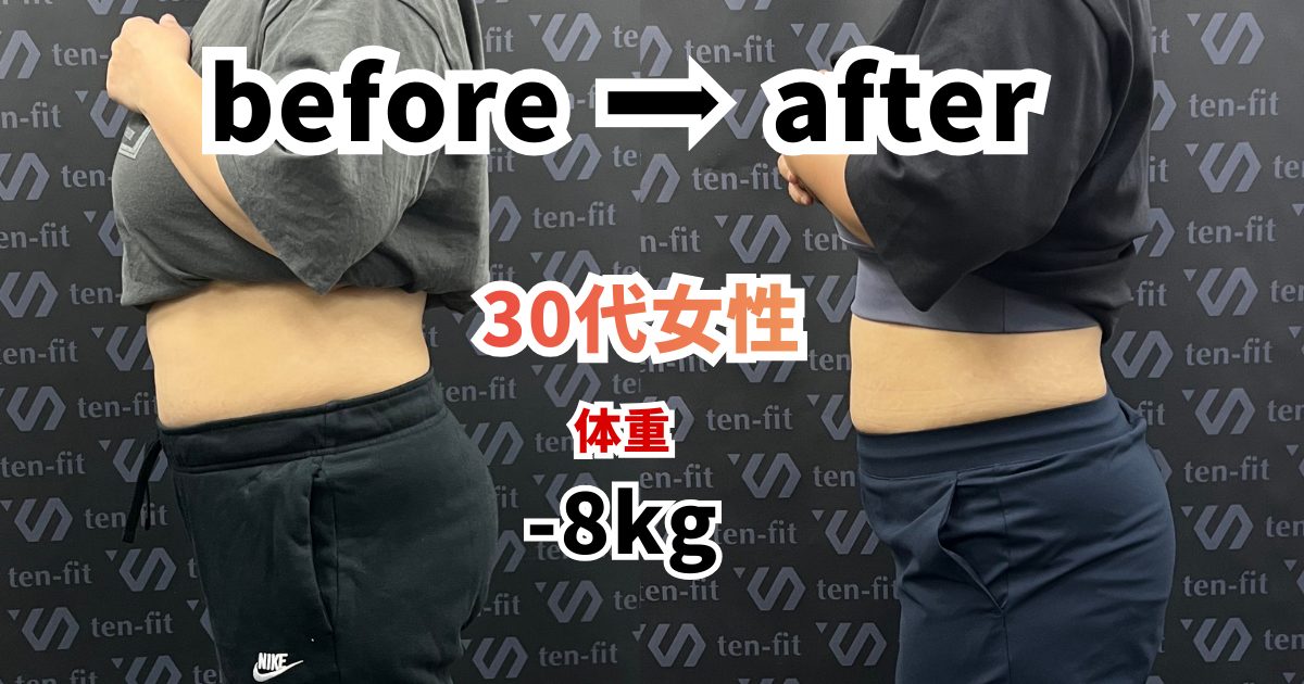 今回は3ヶ月の短期集中ダイエットパックで体重−8kgを達成した30代女性のお客様のビフォーアフターをご紹介します!