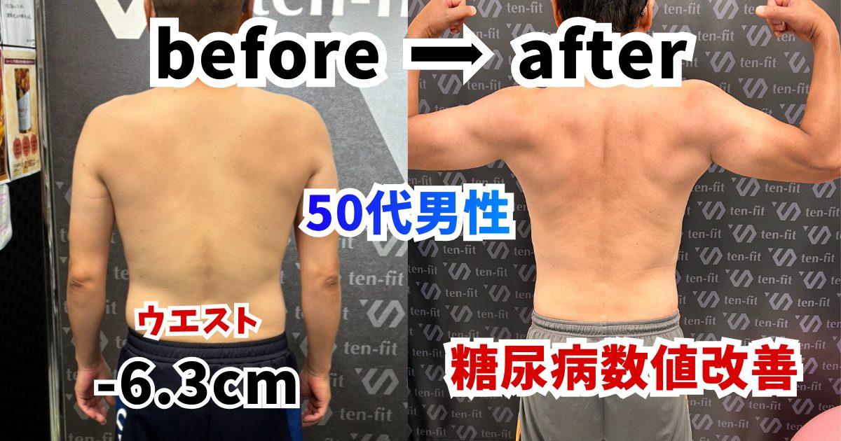 【ビフォーアフター紹介】50代男性が体重は変えずににウエスト-6.3センチ達成!さらに糖尿病の数値改善